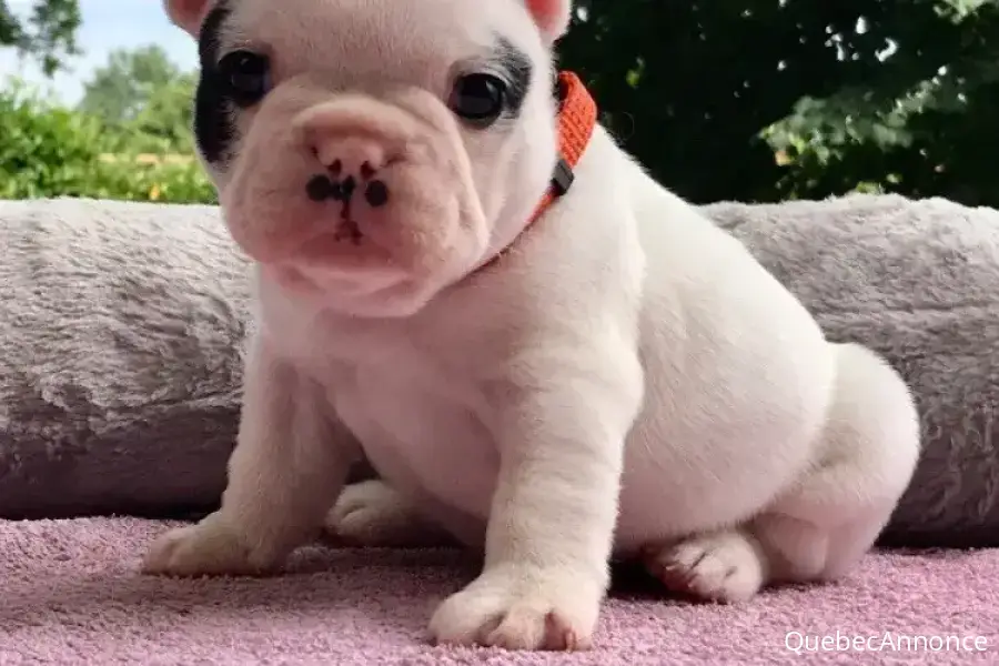Sublime chiots Bouledogue Français inscrit au CKC dont 1 mâle et 1 femelle âgés de 3 mois d'une portée de 4 chiots. Les chiots sont disponibles ils sont vaccine, vermifugés , tatoués et vaccinés parfaitement socialisés, idéal pour la compagnie