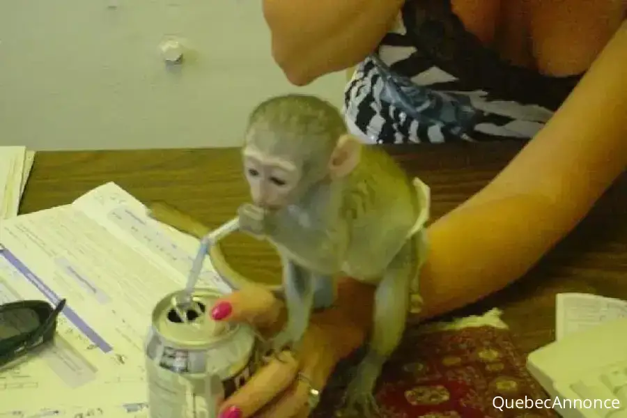 Bébé Singe Capucin Pure Race Pedigree,Portée de 5 Singes, dont 2 Mâles et 3 Femelles âgés de 3 Mois, vaccinés, Pucés(Puce Electronique), vermifugés régulièrement, Certificat de bonne Santé Vétérinaire .Ils sont très propres, doux, dociles, affectueux, obéissants très sociables puisque élevés en compagnie des chiens, chiens, chats, etc...et aussi avec des enfants. E-mail : danielle.belanger02@gmail.com