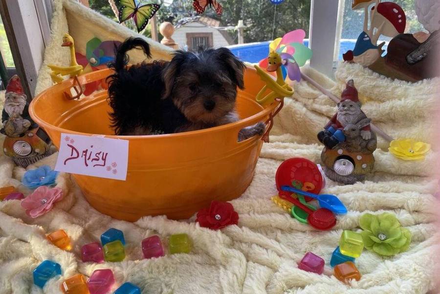Très jolis Bébés Yorkshire Terrier Pure Race inscrits au CKC issus de grandes lignées, il y a 3 Mâles et 2 Femelles pucés, vaccinés, vermifugés régulièrement sans oublier leur certificat de bonne santé vétérinaire.Ce sont des chiots magnifiques, petite tête de poupée, E-mail : danielle.belanger02@gmail.com