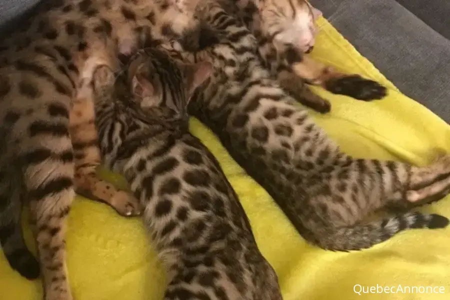 Nous somme heureux de vous annoncer la naissance de 5 chatons Bengale donc 3 femelles et 2 males ils sont adoptables a partir de ce jour, pucés, vaccinés, avec certificat de bonne santé ils sont à céder en chats de compagnie a toutes personne avec amour pour felins.