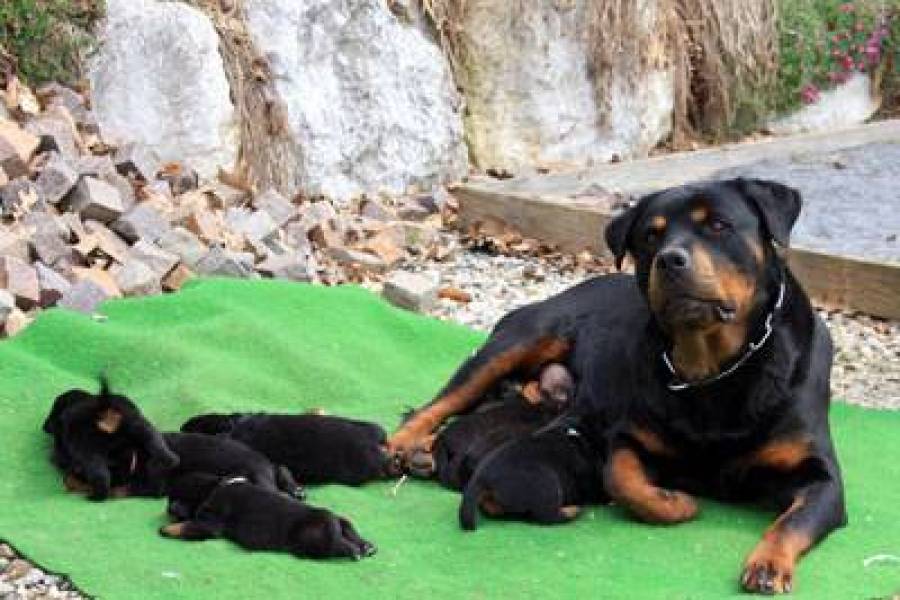 Reste 3 chiots de rottweiler. Il s'agit de 1 male et 3 femelles Calme, équilibré, obéissant, courageux, le Rottweiler peut être facilement dressé. On l’emploie comme chien de troupeau et de police,C’est également un compagnon agréable, qui adore jouer avec les enfants.